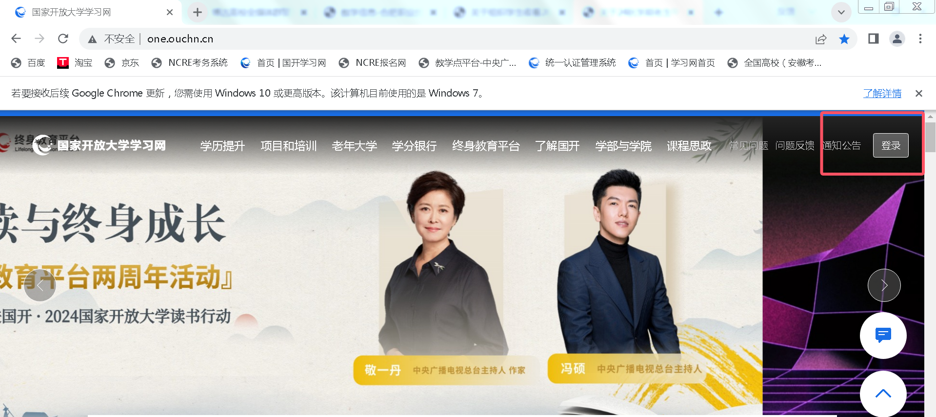1.国开学习网电脑版网址:http://one.ouchn.cn/,点击登录按钮,输入用户名:学号,密码:Ouchn@出生日期八位数字(字母O首字母大写)。电脑版请使用谷歌或者火狐浏览器。