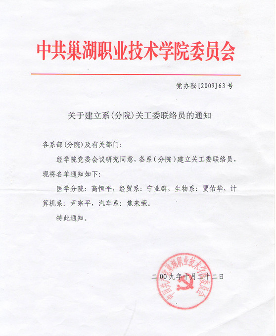关于建立系(分院)关工委联络员的通知
