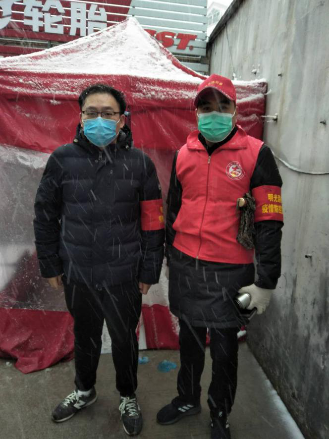 他积极响应党组织的号召,成为了市委组织的防控疫情志愿者。作为一名防疫人员,钱春阳同志始终牢记自己共产党员的身份。由于居住地的原因,他随社区分到了瑶海区明光路街道填海巷社区大通路94号。瑶海区是本次疫情的重点区域,也是合肥的老城区,区内有很多老旧小区,很多独栋住宅,人员结构十分复杂。他所值守的大通路94号就是这样一座老旧独栋住宅楼,实行24小时封闭式管理。在他接到学校通知的当天下午就来到了值守卡点,这栋住宅楼是个独栋没有大门,由于出入口分散,工作时值守人员要目不转睛,特殊情况时要用身体阻拦。